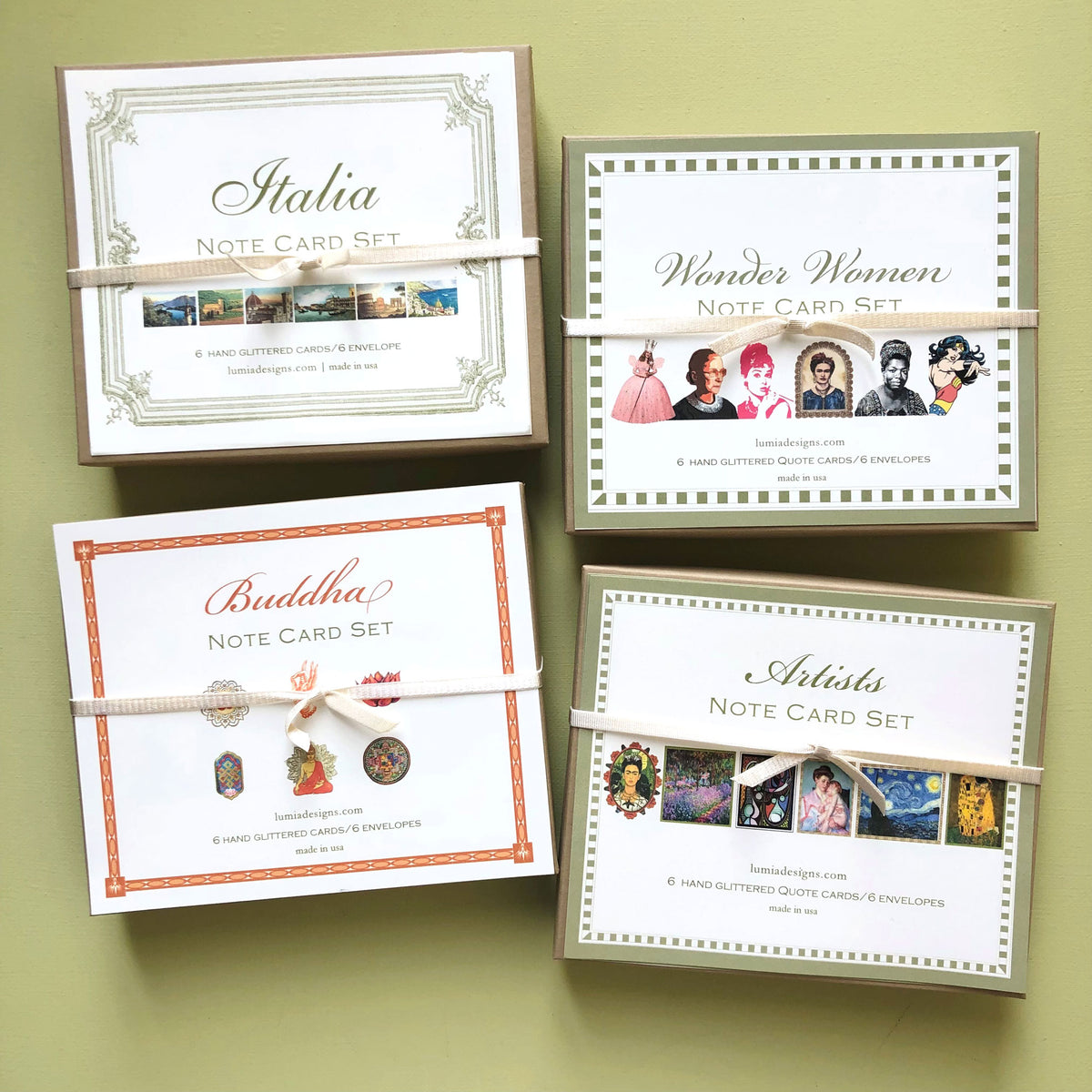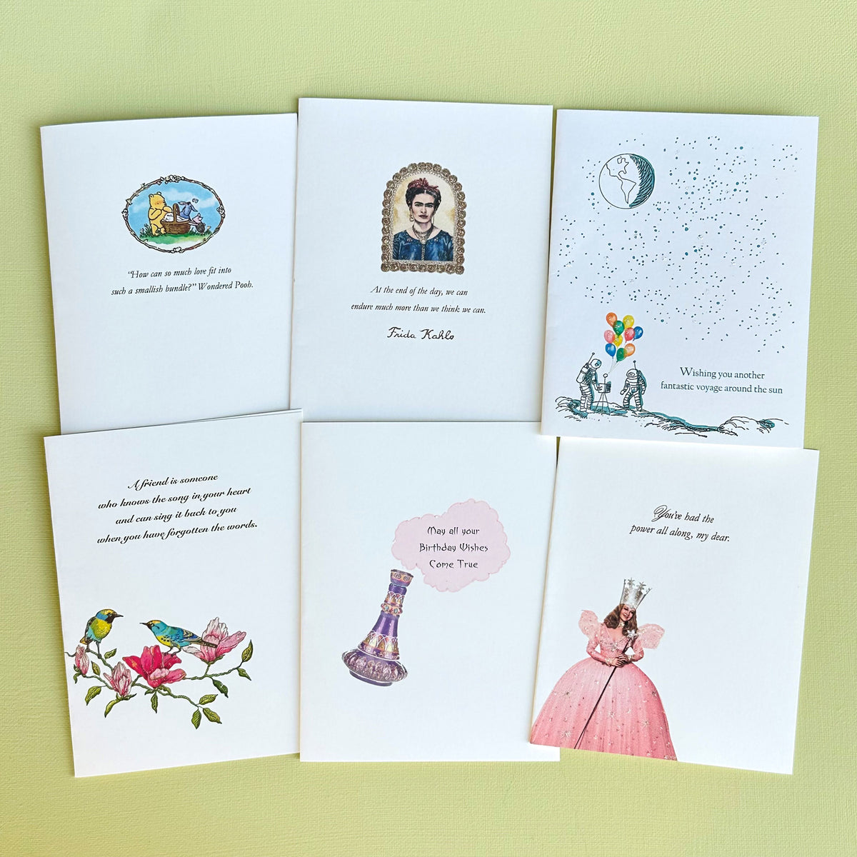 Blank Inside. 6 Assorted, Packed in a stylish box, tied with a satin bow.